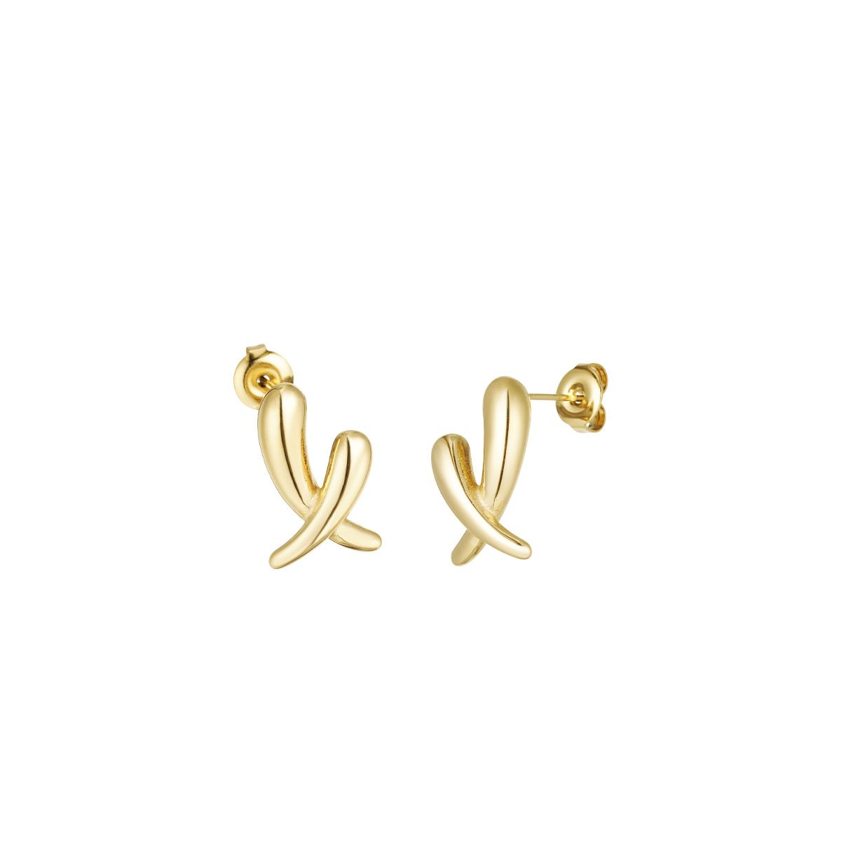 Elegantne naušnice sa suvremenim dizajnom u obliku dvostrukog zakrivljenog motiva, izrađene od nehrđajućeg čelika s pozlatom.