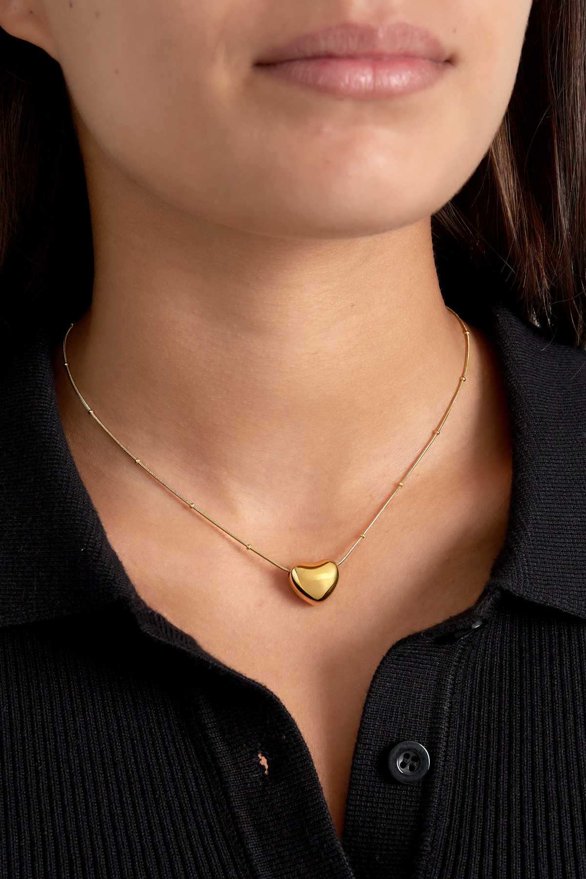Ova predivna ogrlica s upečatljivim privjeskom u obliku srca osmišljena je da privuče pažnju u svakoj prilici.